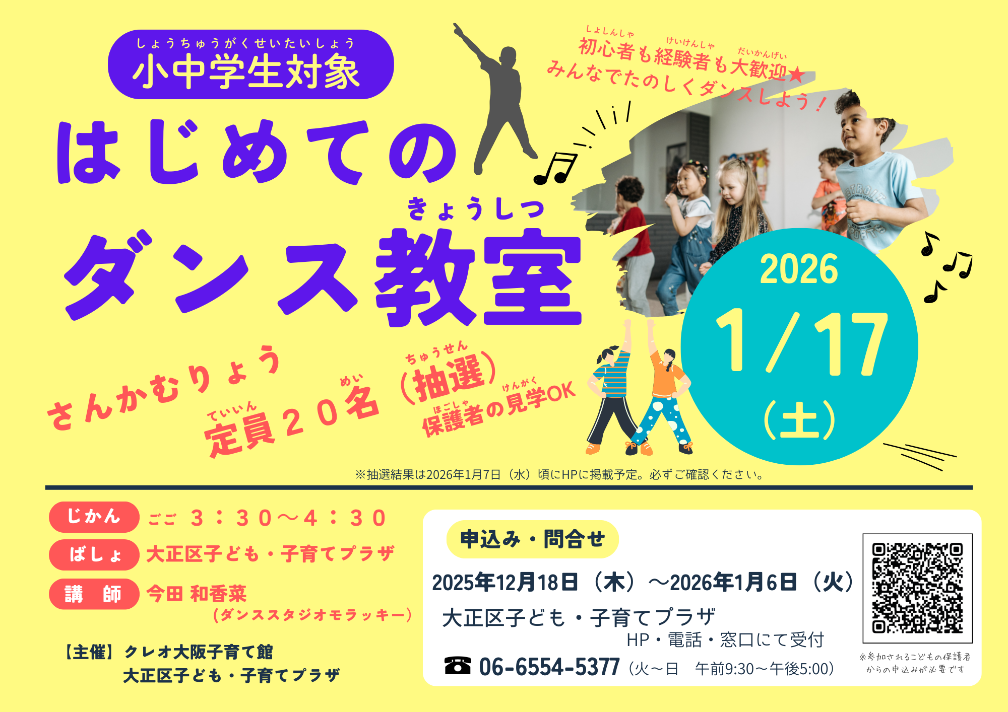 【申込み期間】 2025年12月18日(木)~2026年1月6日(火) ★抽選となります ★結果を必ずご確認ください ・電話または窓口にて ・下記「お申込みフォーム」より ※午前9時30分~受付開始となります。 ※参加されるお子さんの保護者からの申込みにかぎります。 (友人など、代理の申込みはできません) |