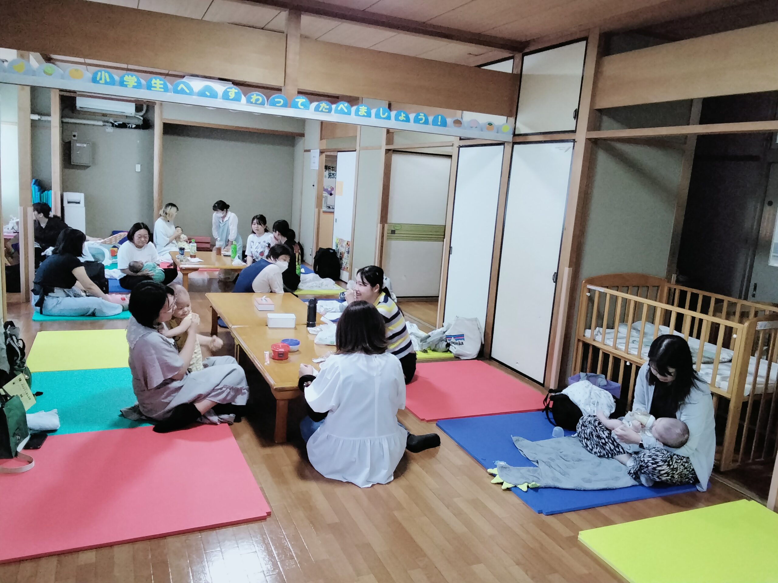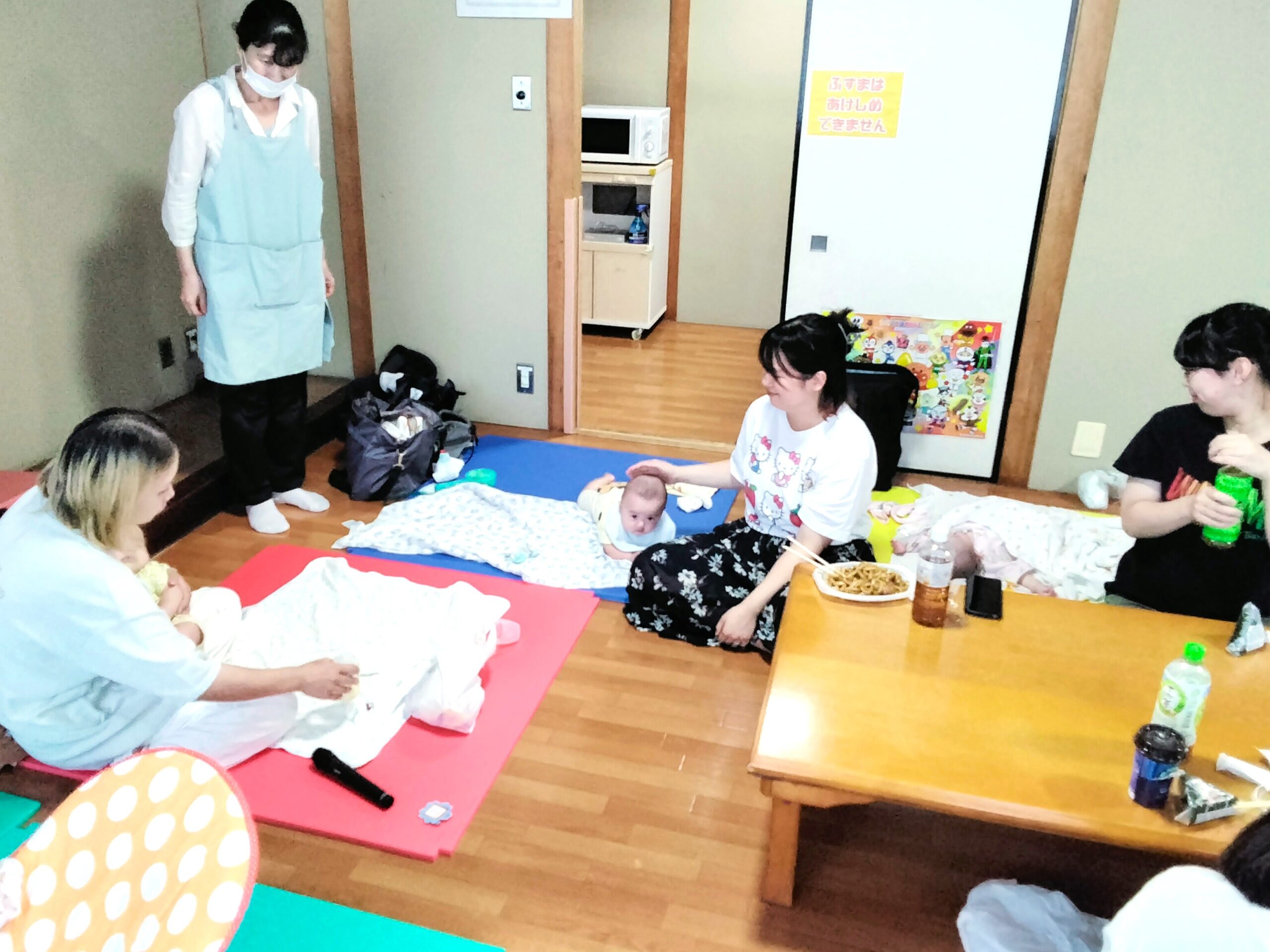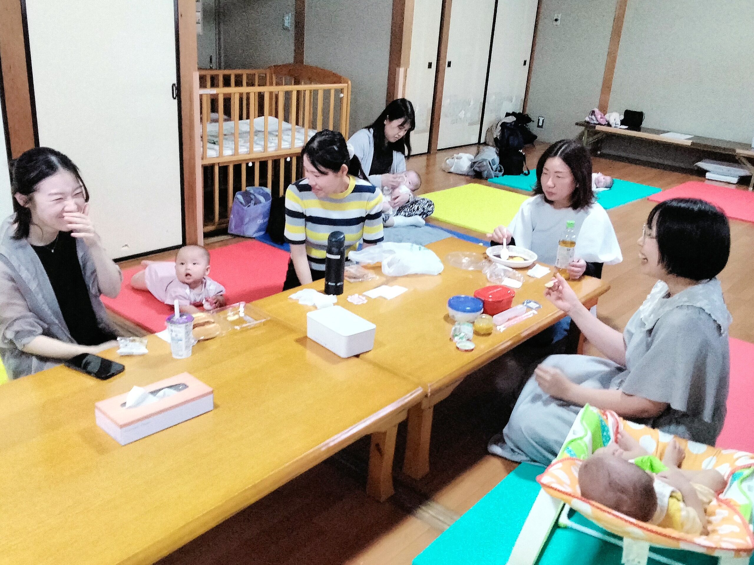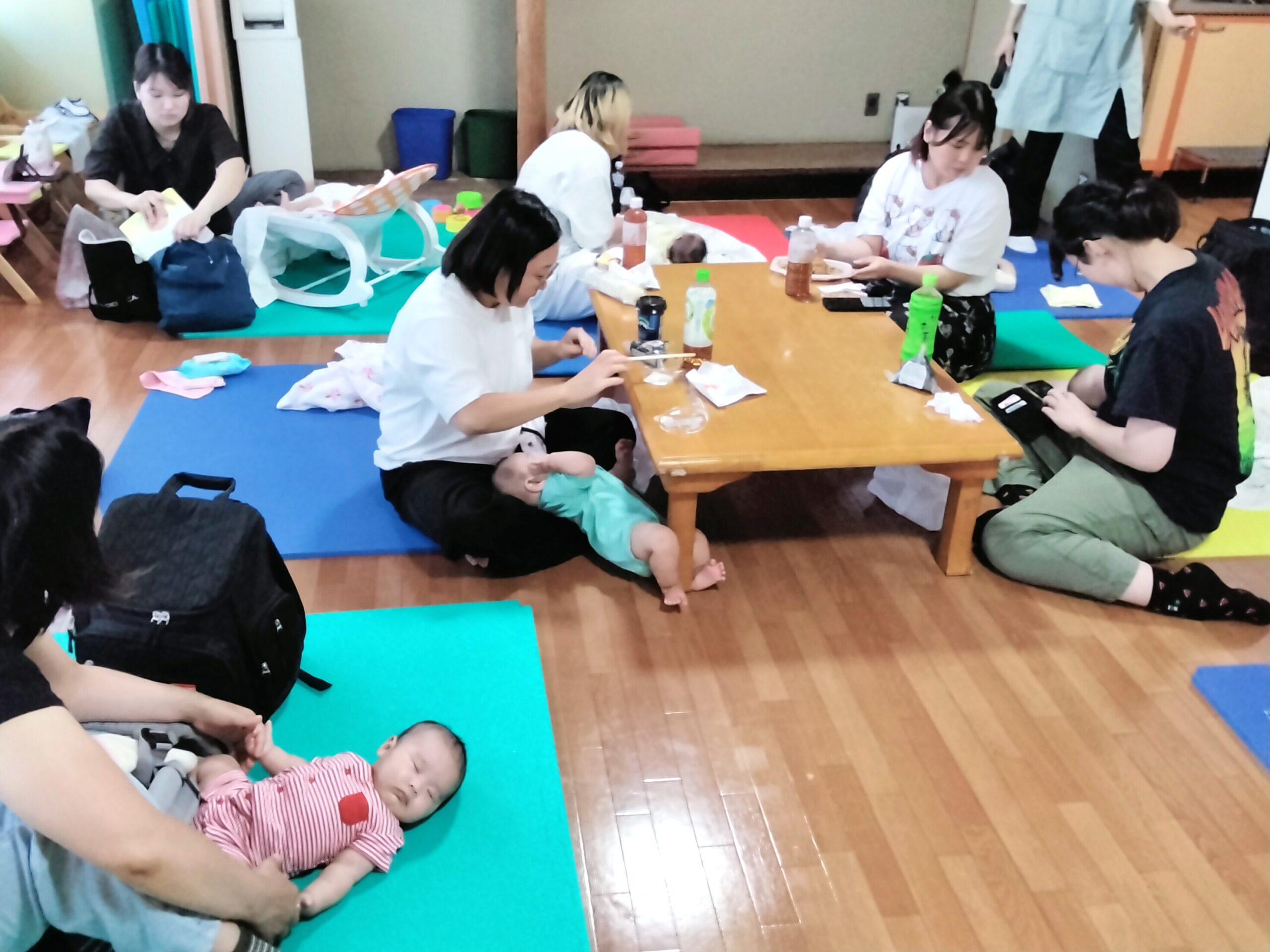 ご参加ありがとうございました。ベビーマッサージおわった後、ぐっすり眠っているお子さん達がおられたり、お母さん同士お昼ご飯を食べながらいろんなお話をされてとても楽しそうでした。次回は令和7年11月5日(水曜日) 12:30~14:30まで利用できます。おしゃべりいっぱいの楽しい時間をお過ごしください。皆様のご参加お待ちしております。