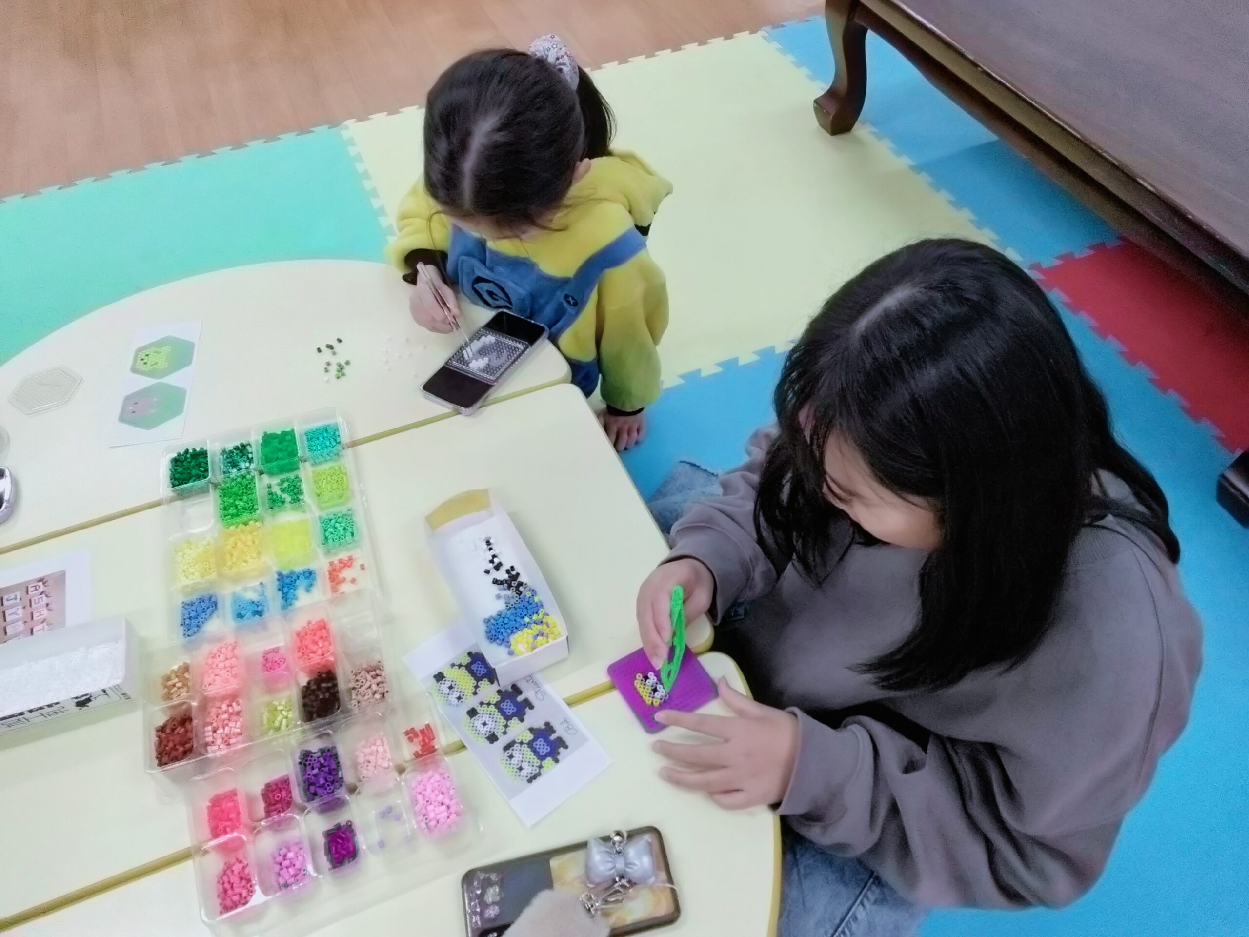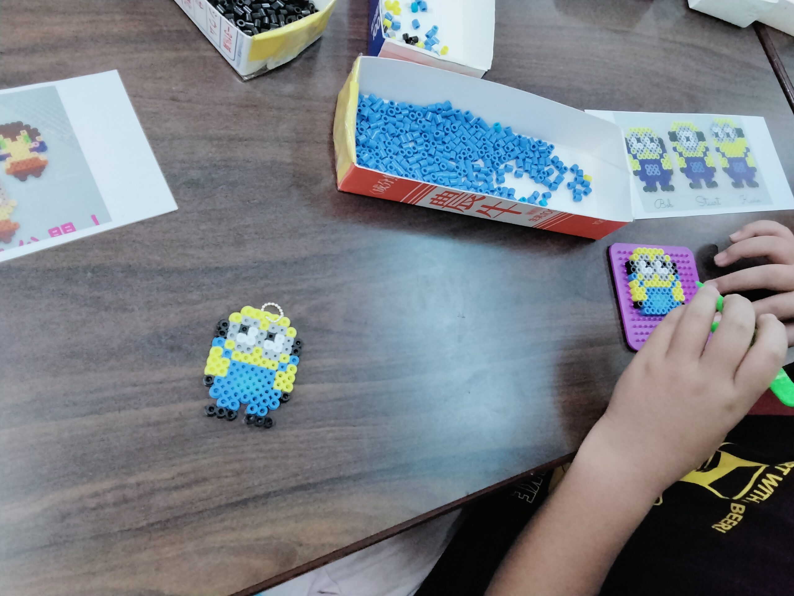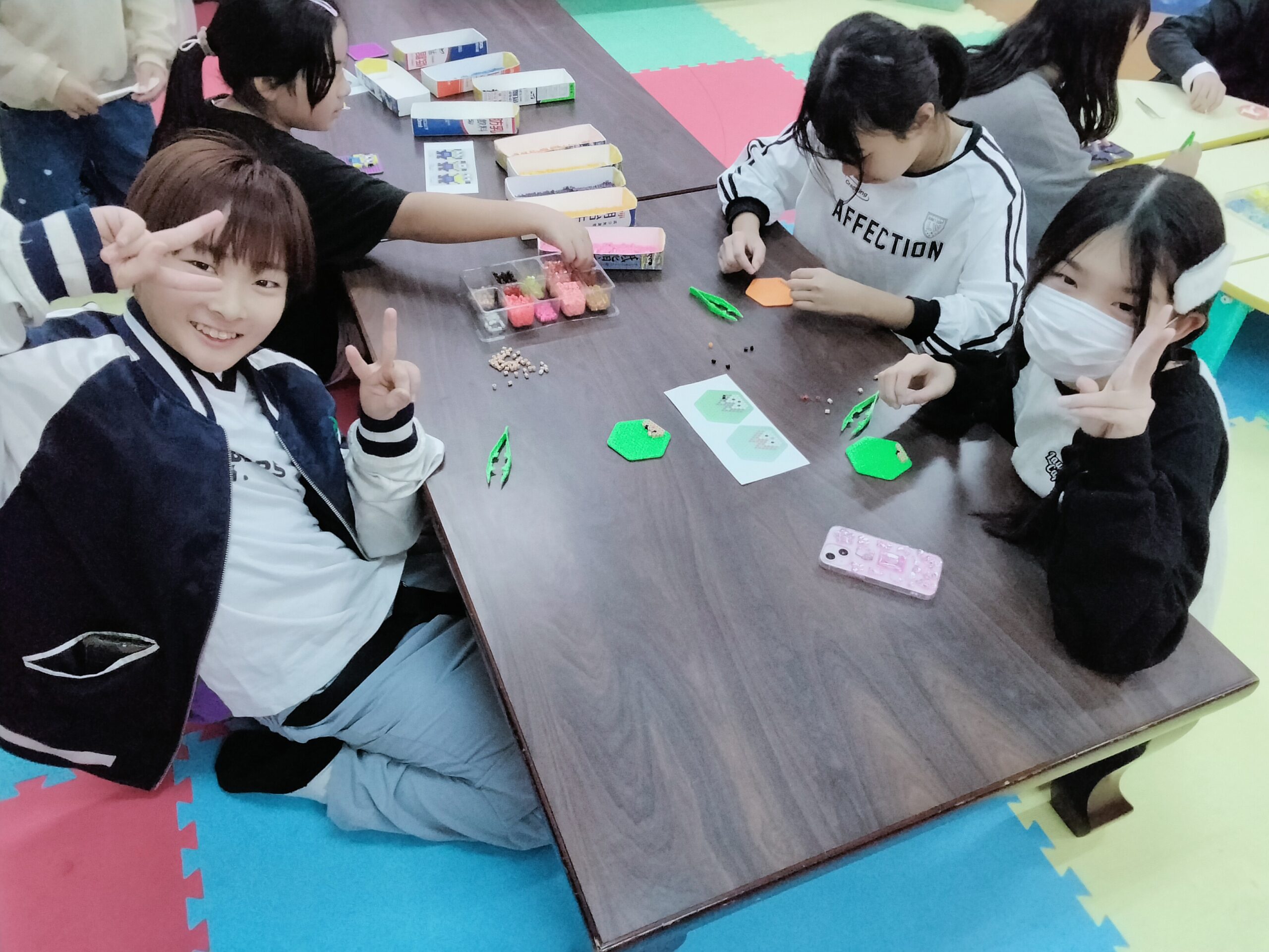 子どもたちは集中して自分のイニシャルや好きなキャラクターの作品を作っていました。