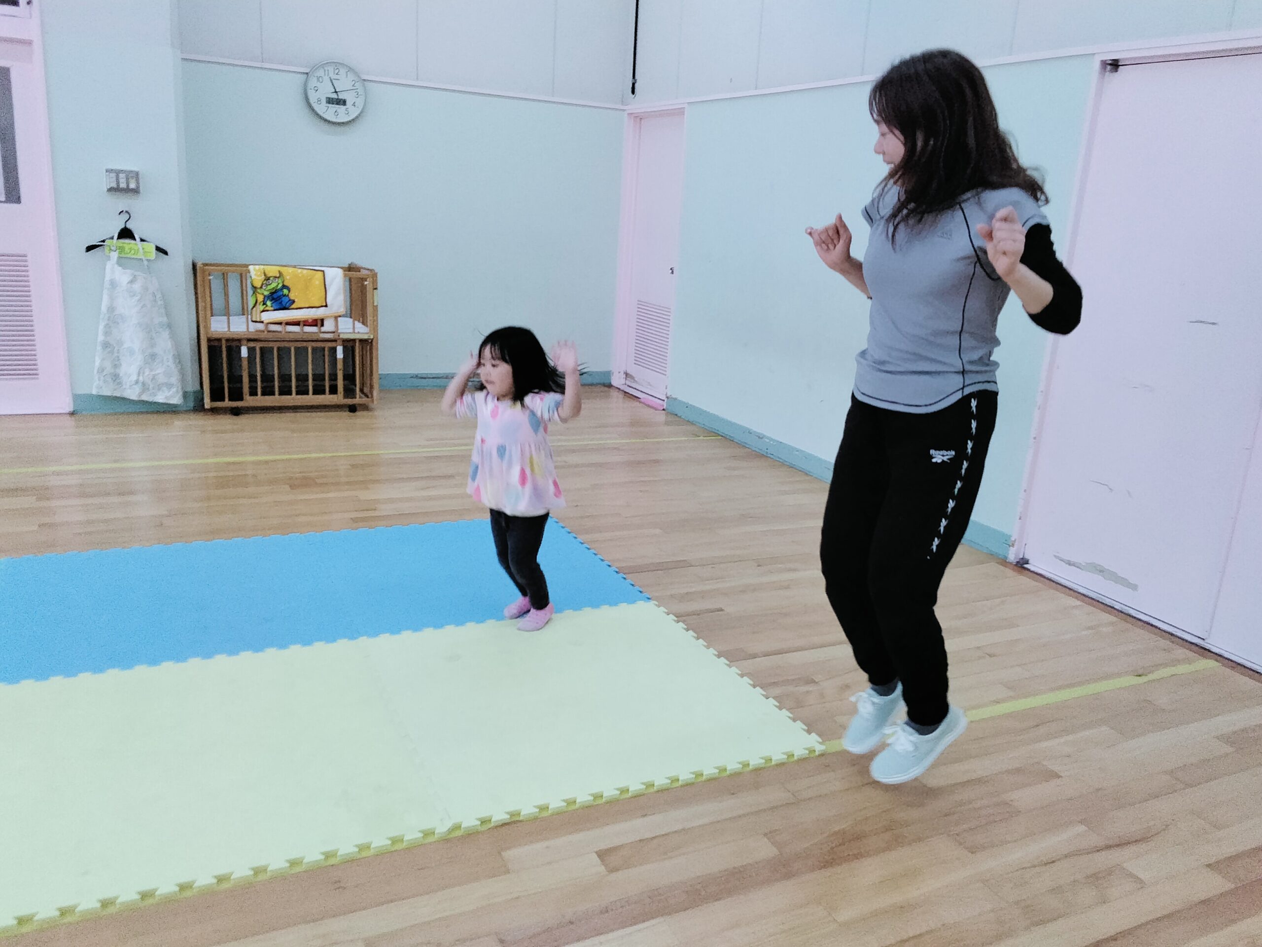 お子さまとの手遊びやふれあい遊び、音楽に合わせてダンス、ストレッチや運動不足解消など、楽しいリフレッシュタイムです。皆様のご参加お待ちしております。