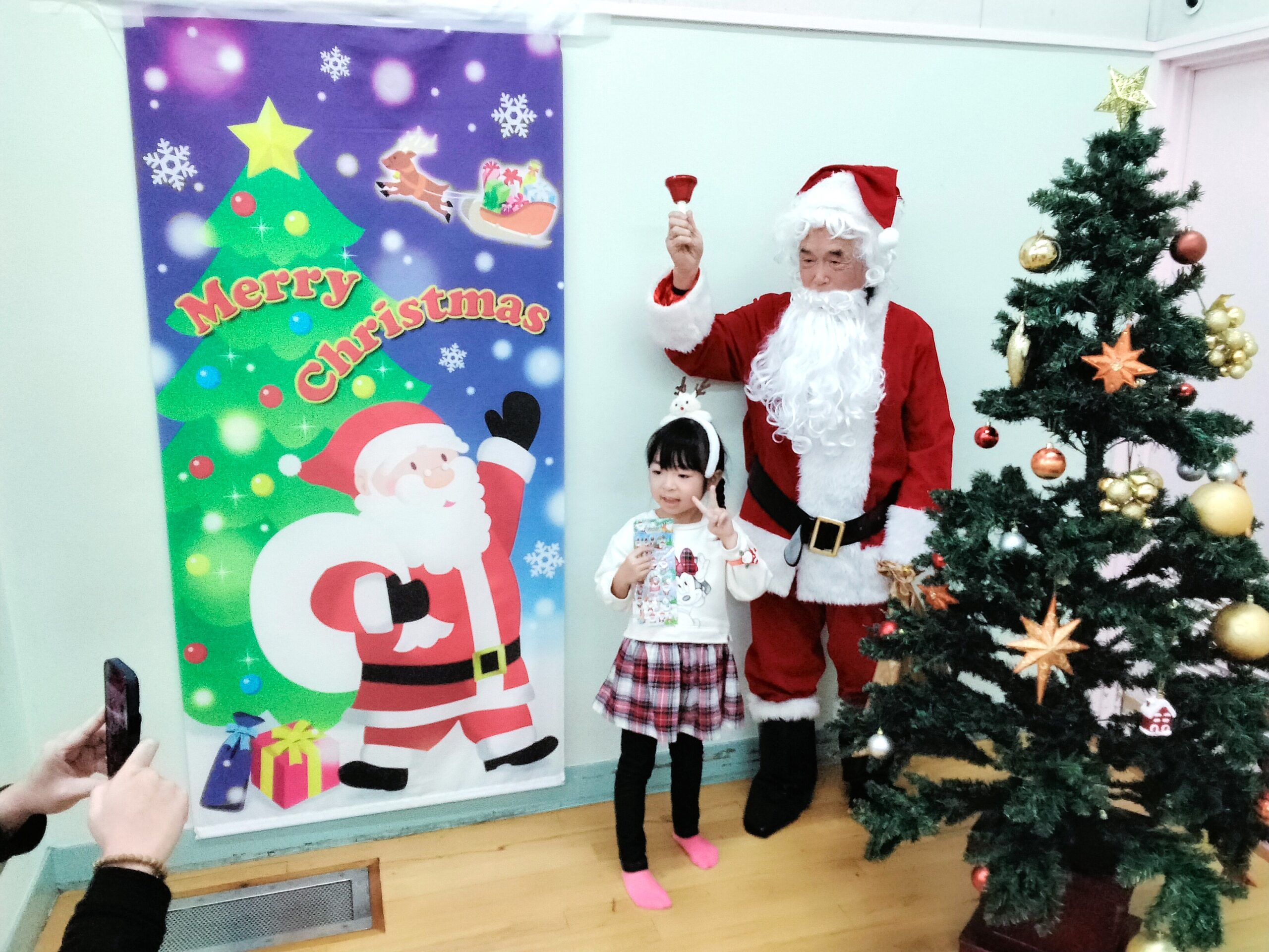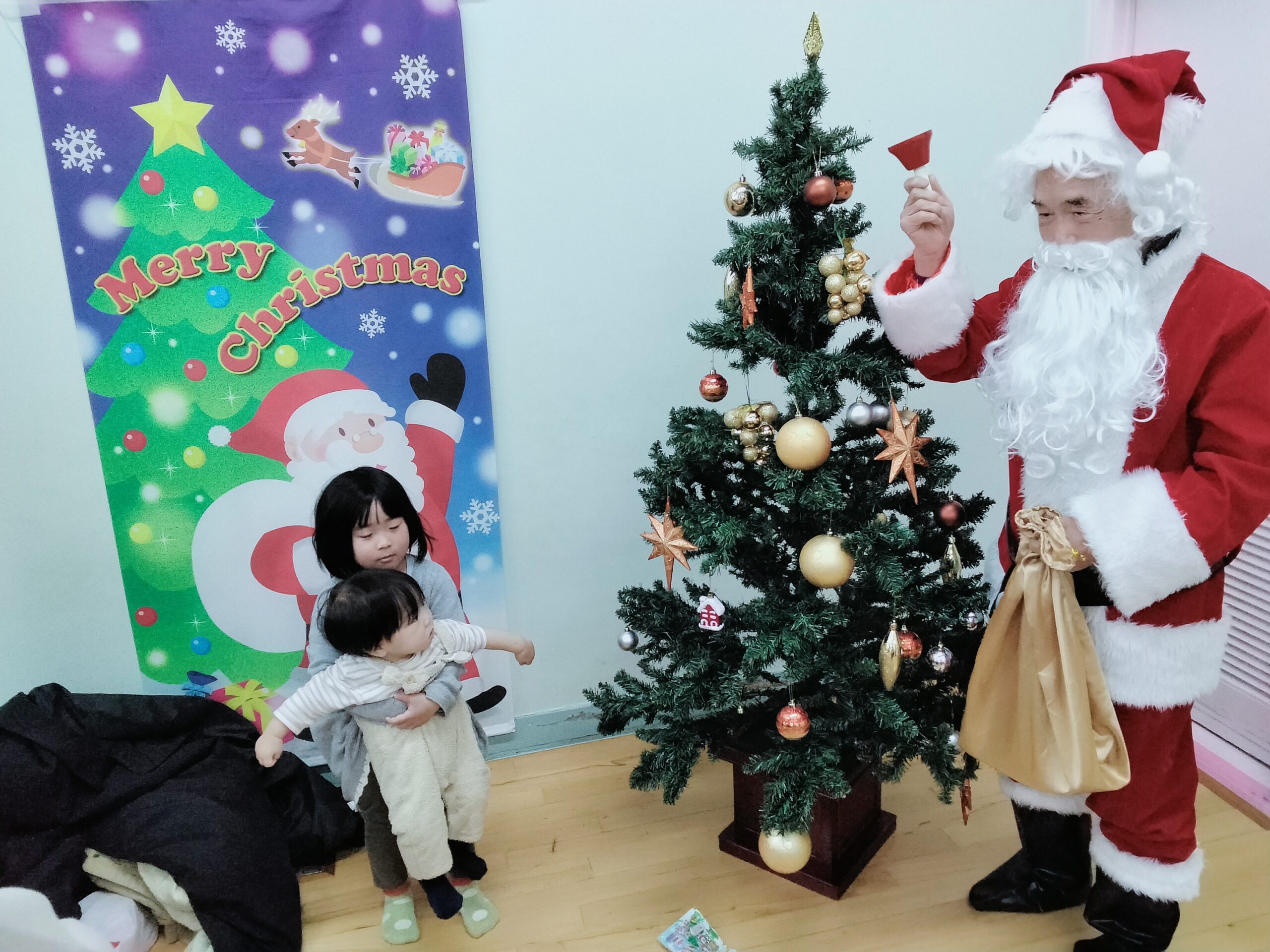 最後はみんな耳をすますとベルの音が聞こえて大きいサンタさんの登場でしたね~☆