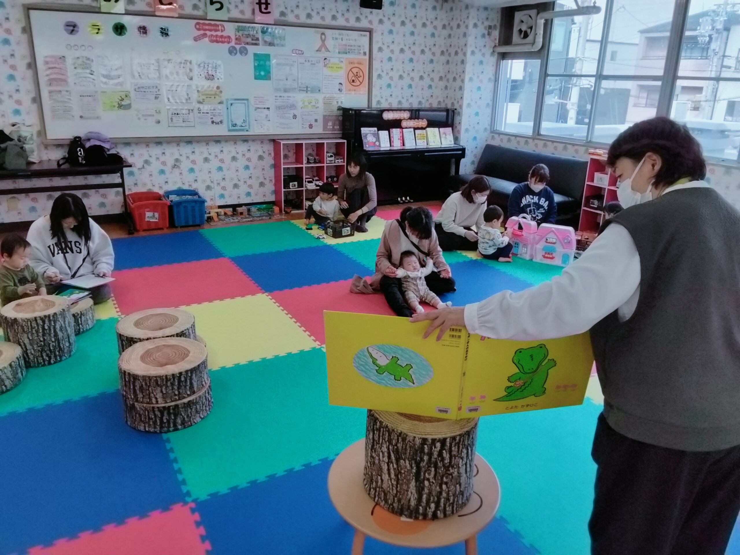 保育士と一緒に手遊びやふれあい遊び、大型絵本で楽しみませんか★  子育ての気になる事をみなさまで共有したり、個別の相談もできます。