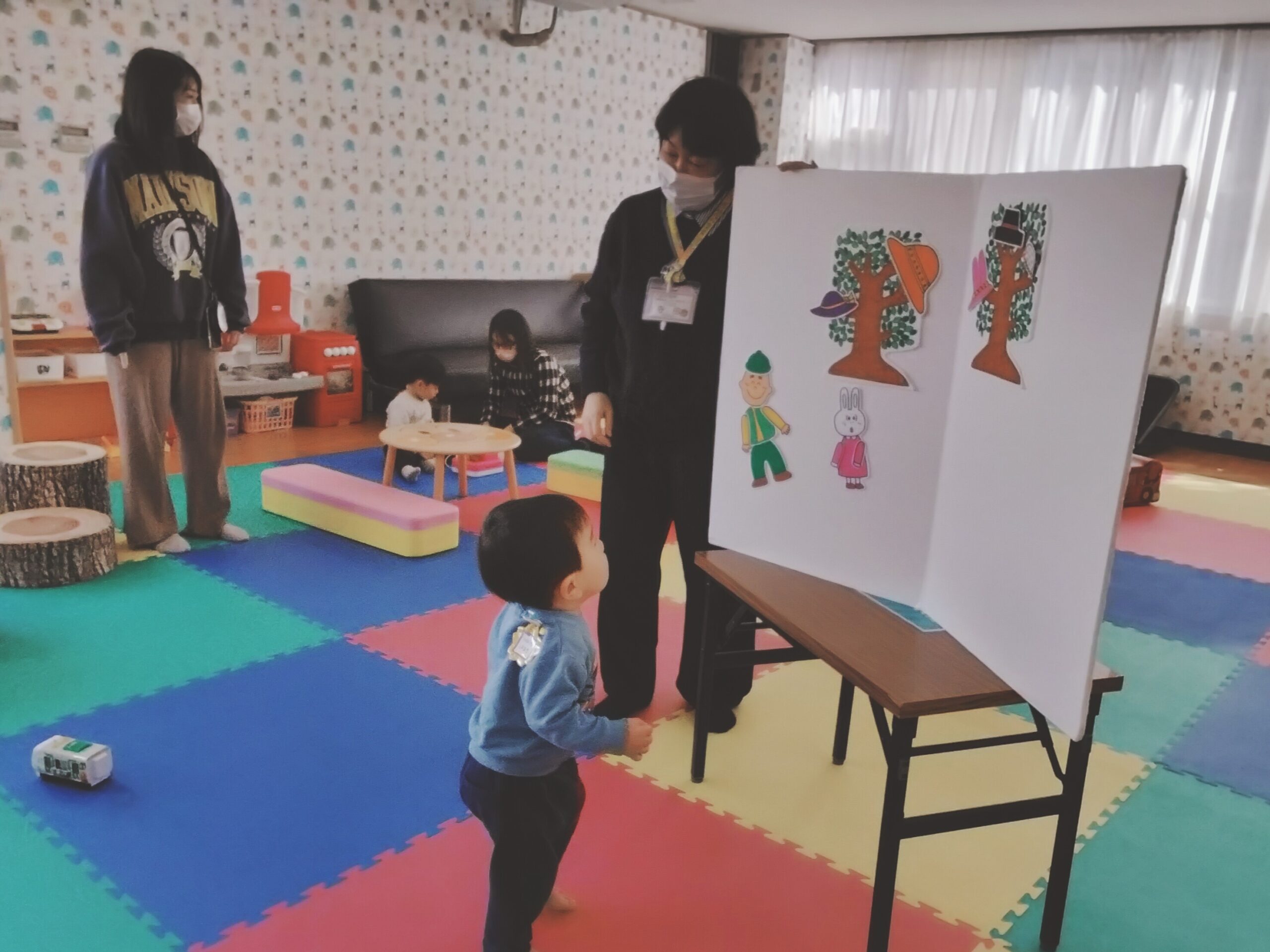 保育士と一緒に手遊びやふれあい遊び、大型絵本で楽しみませんか★ 子育ての気になる事をみなさまで共有したり、個別の相談もできます。