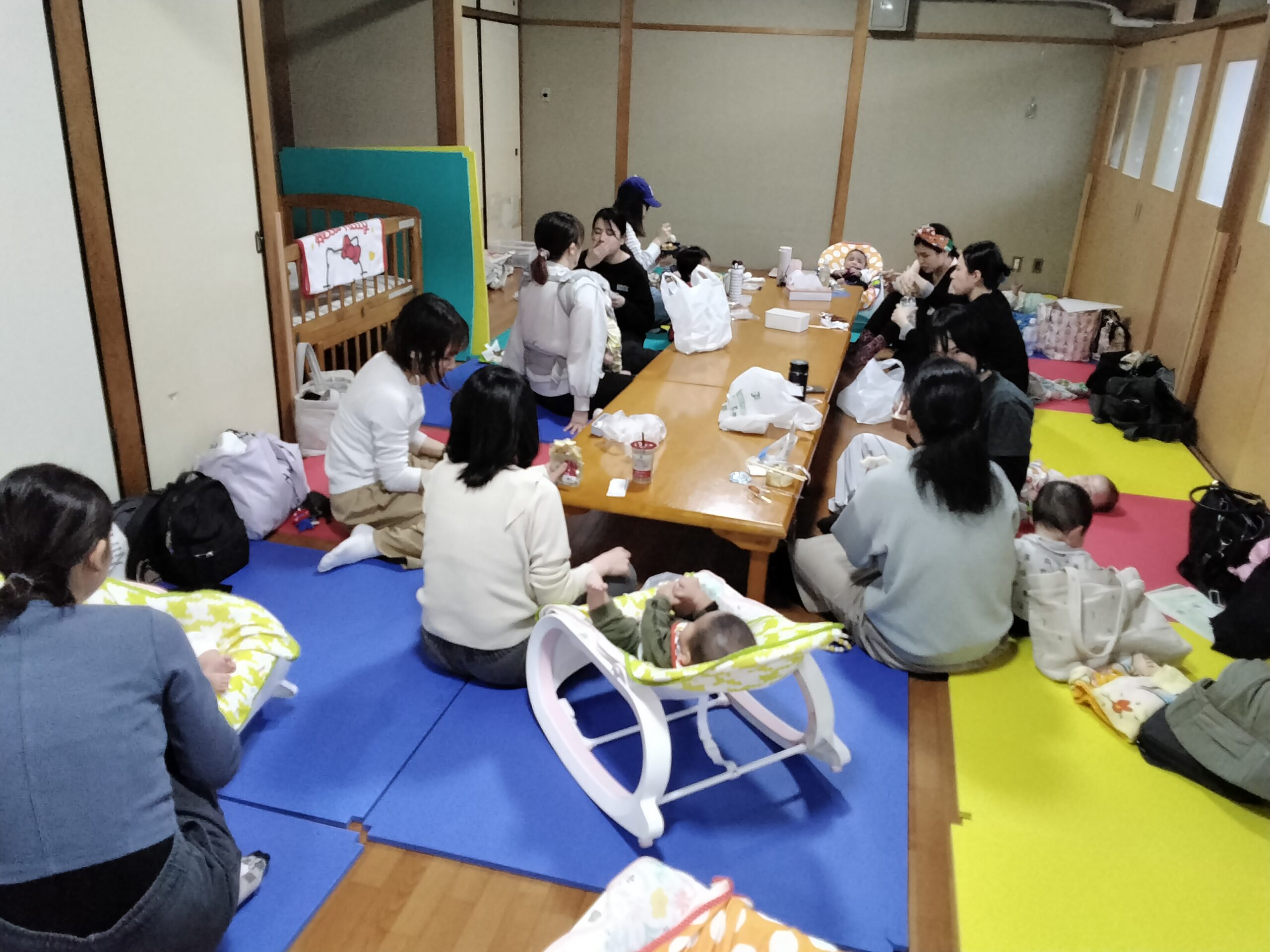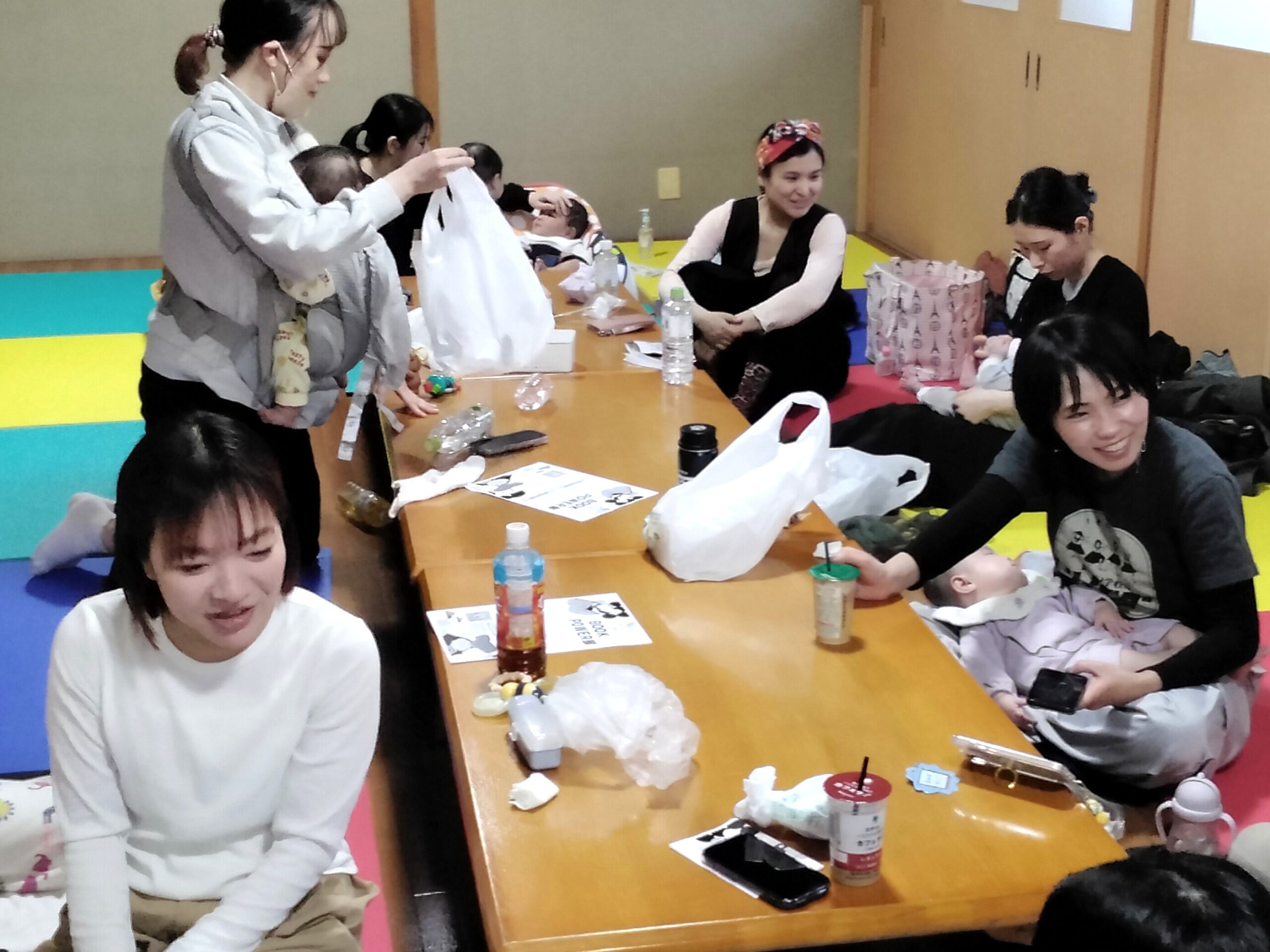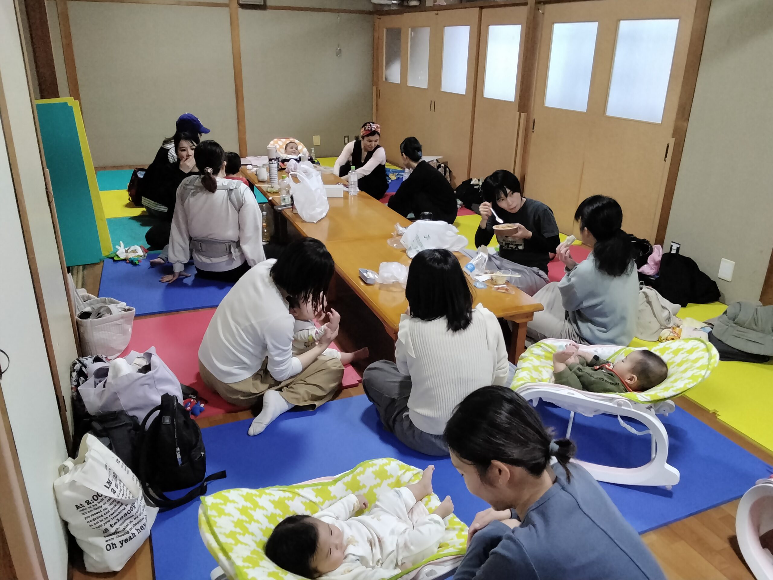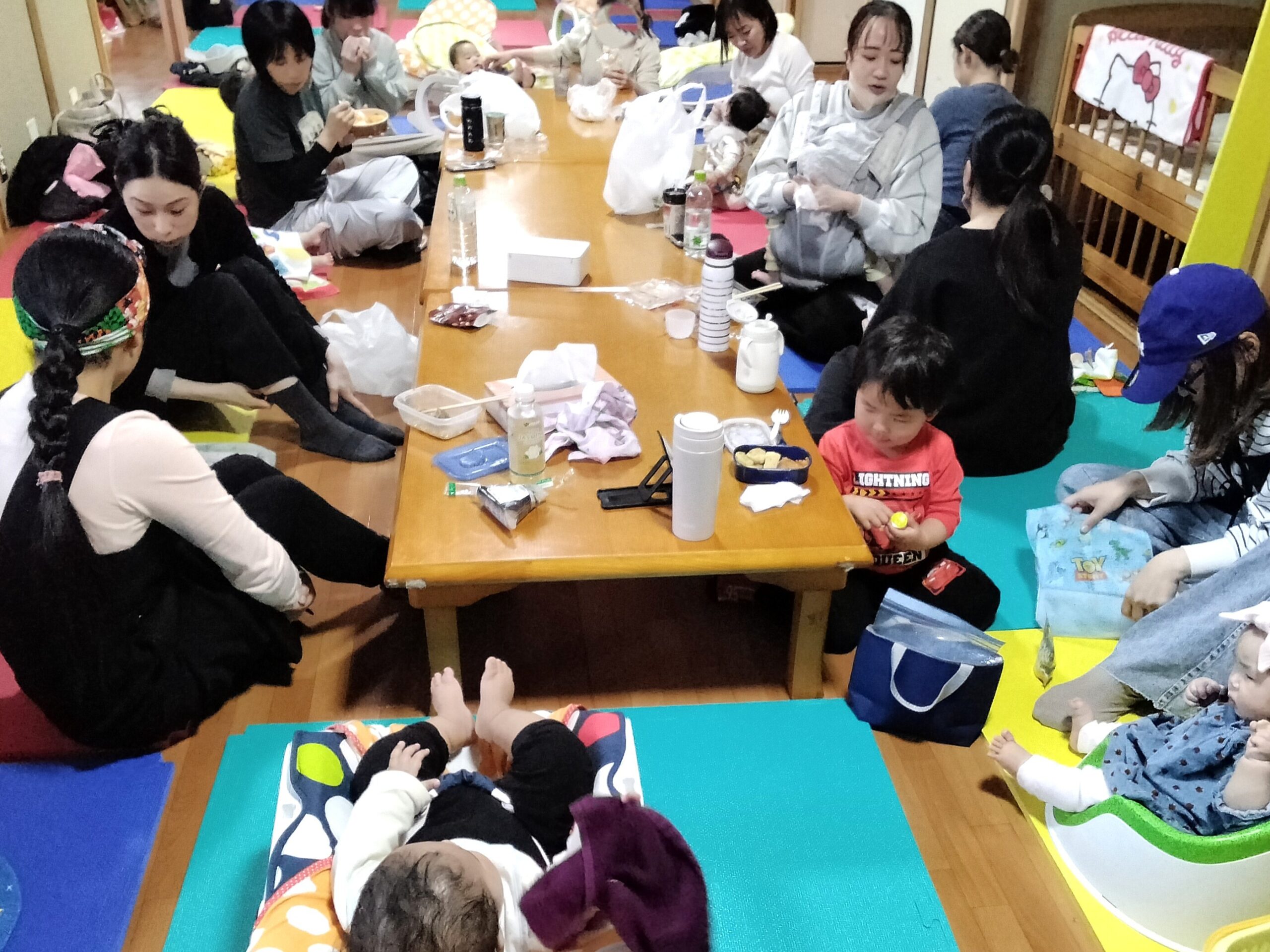 ご参加ありがとうございました。ベビーマッサージ終了後ミルクを飲んで気持ちよさそうに眠っているお子さん達や、お母さん同士お昼ご飯を食べながら始終とても楽しそうにお話されていました。次回は5月20日(水曜日) 12:30~14:30まで利用できます。次回まで1.5か月程間があきますが、又おしゃべりいっぱいの楽しい時間に来てください。皆様のご参加お待ちしております。