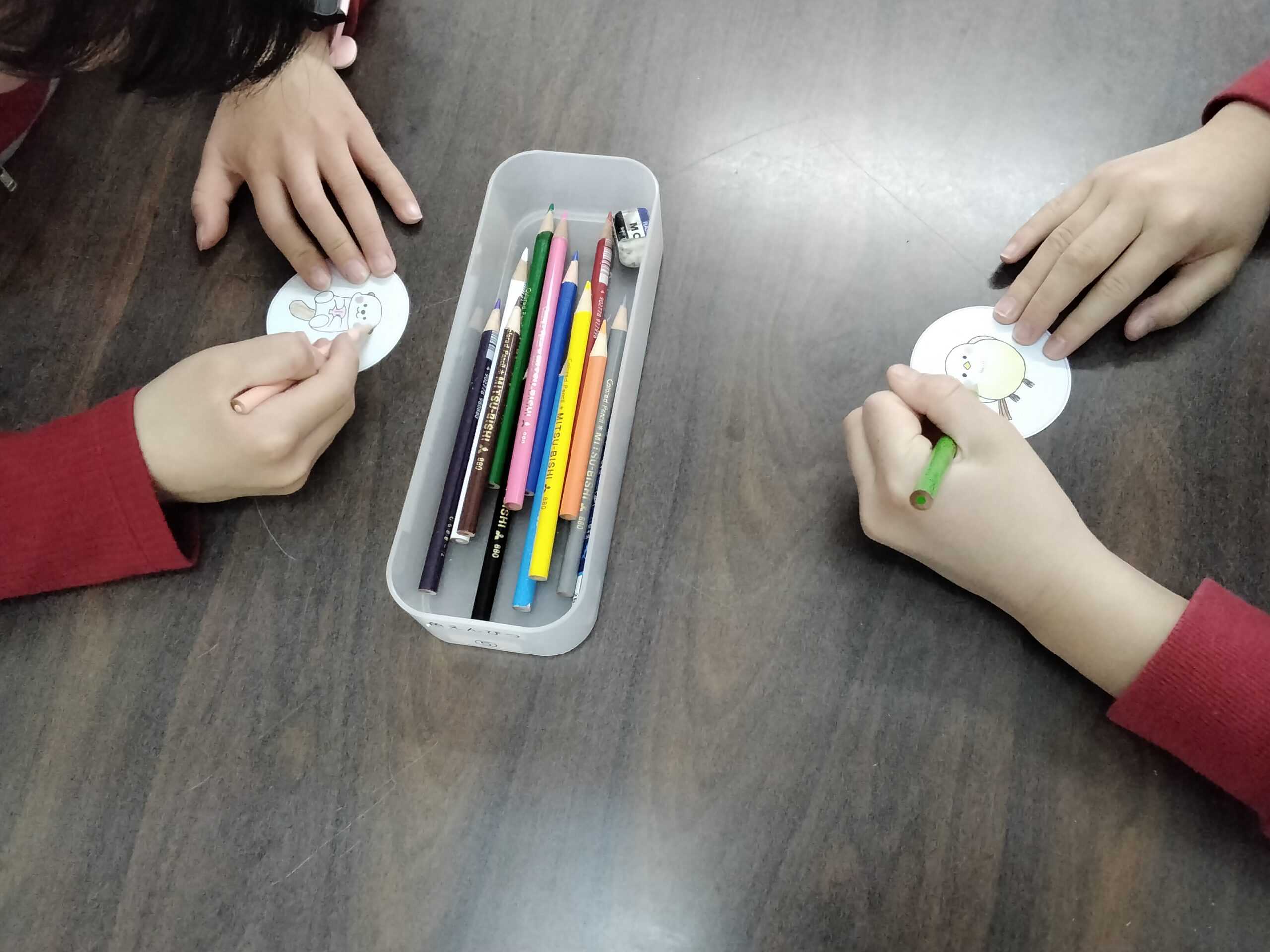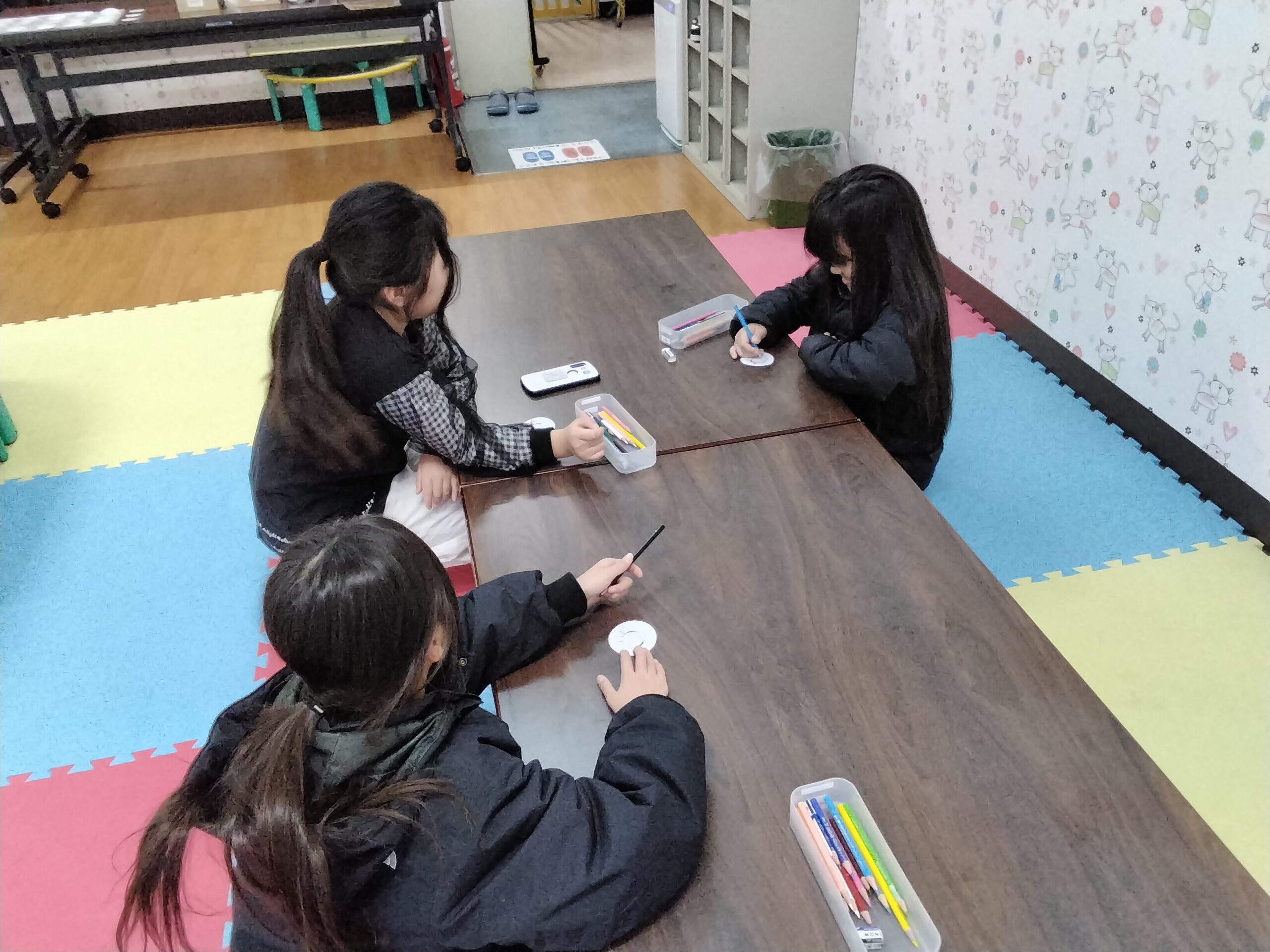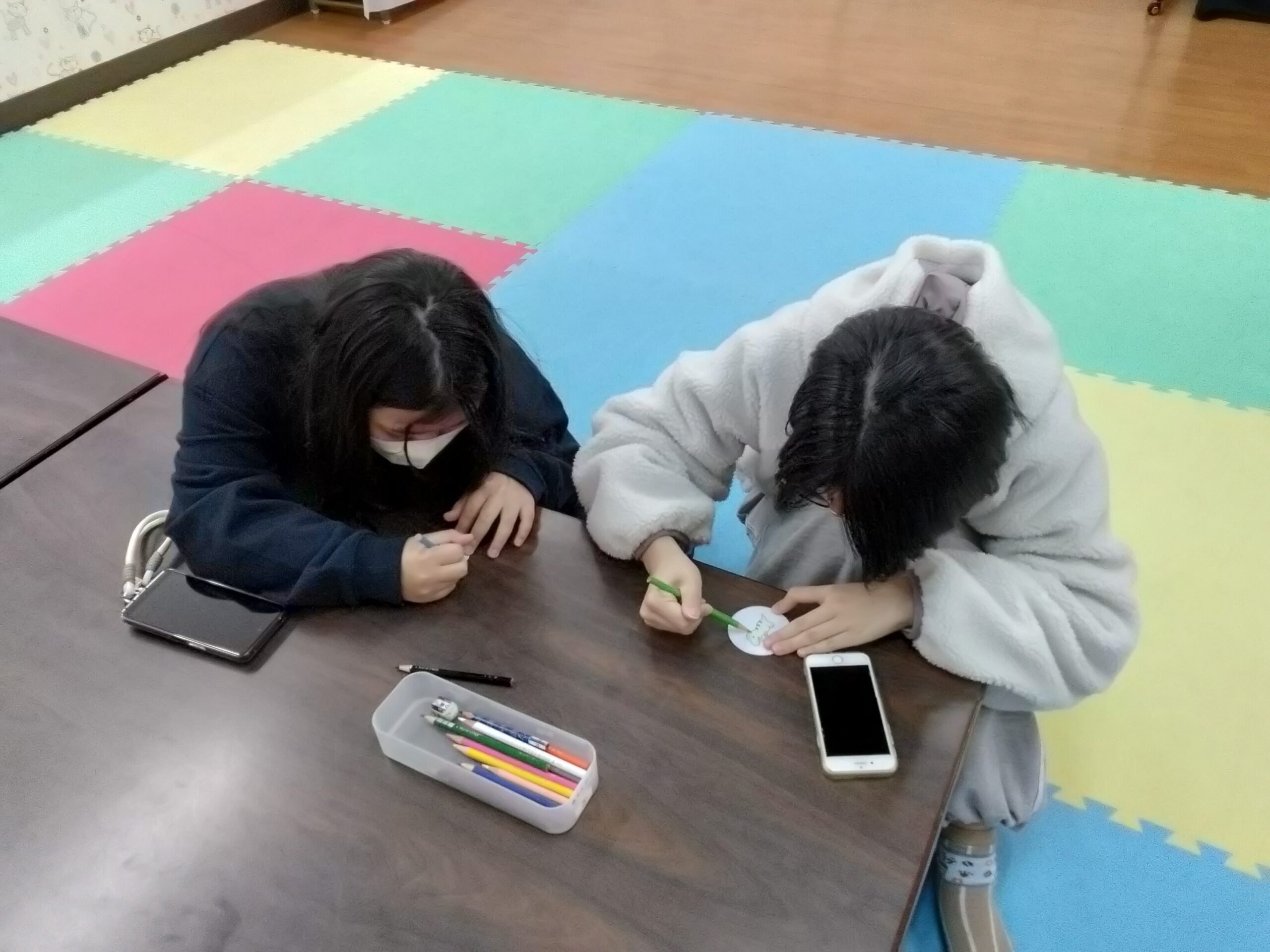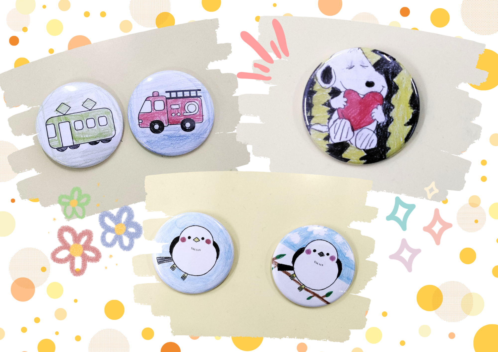 ぬりえをしたり、すきにをかいて缶バッジをつくりました♪
