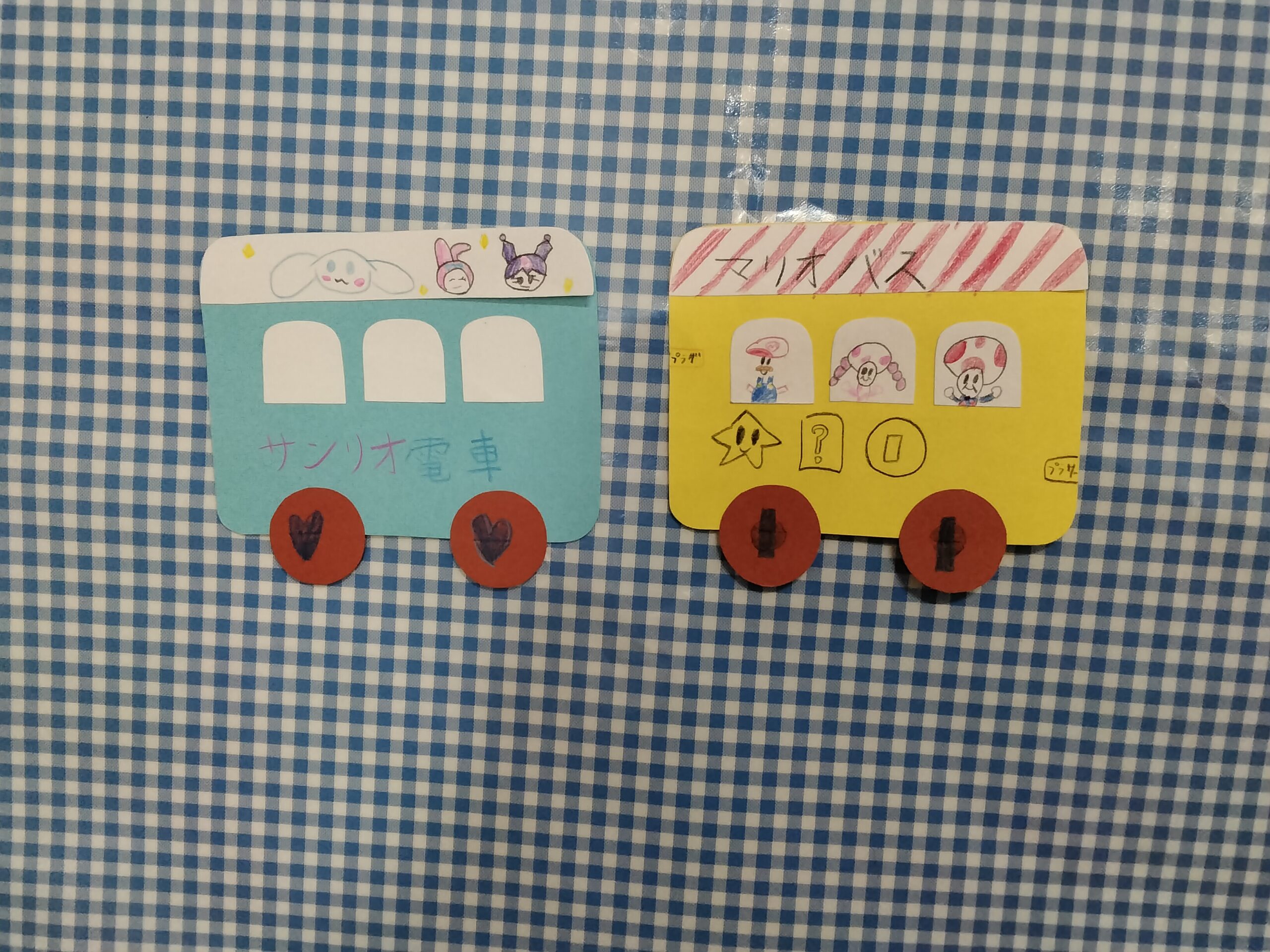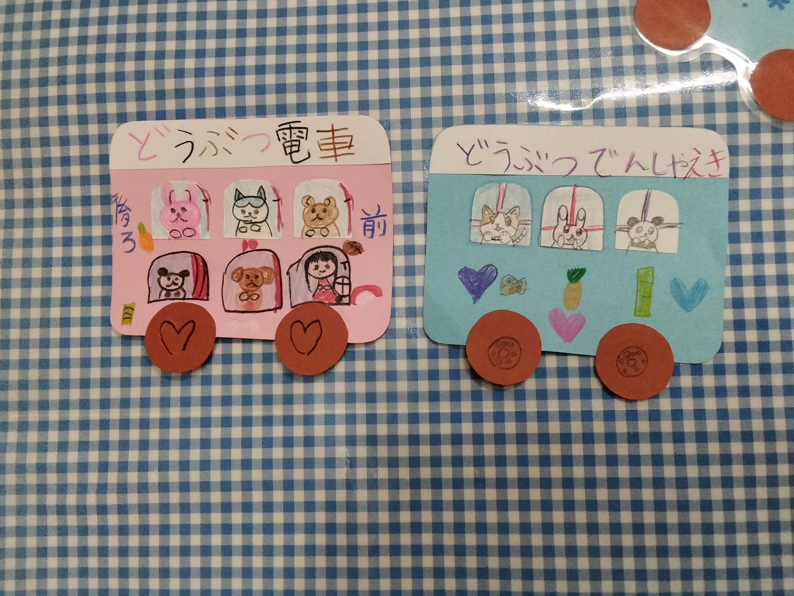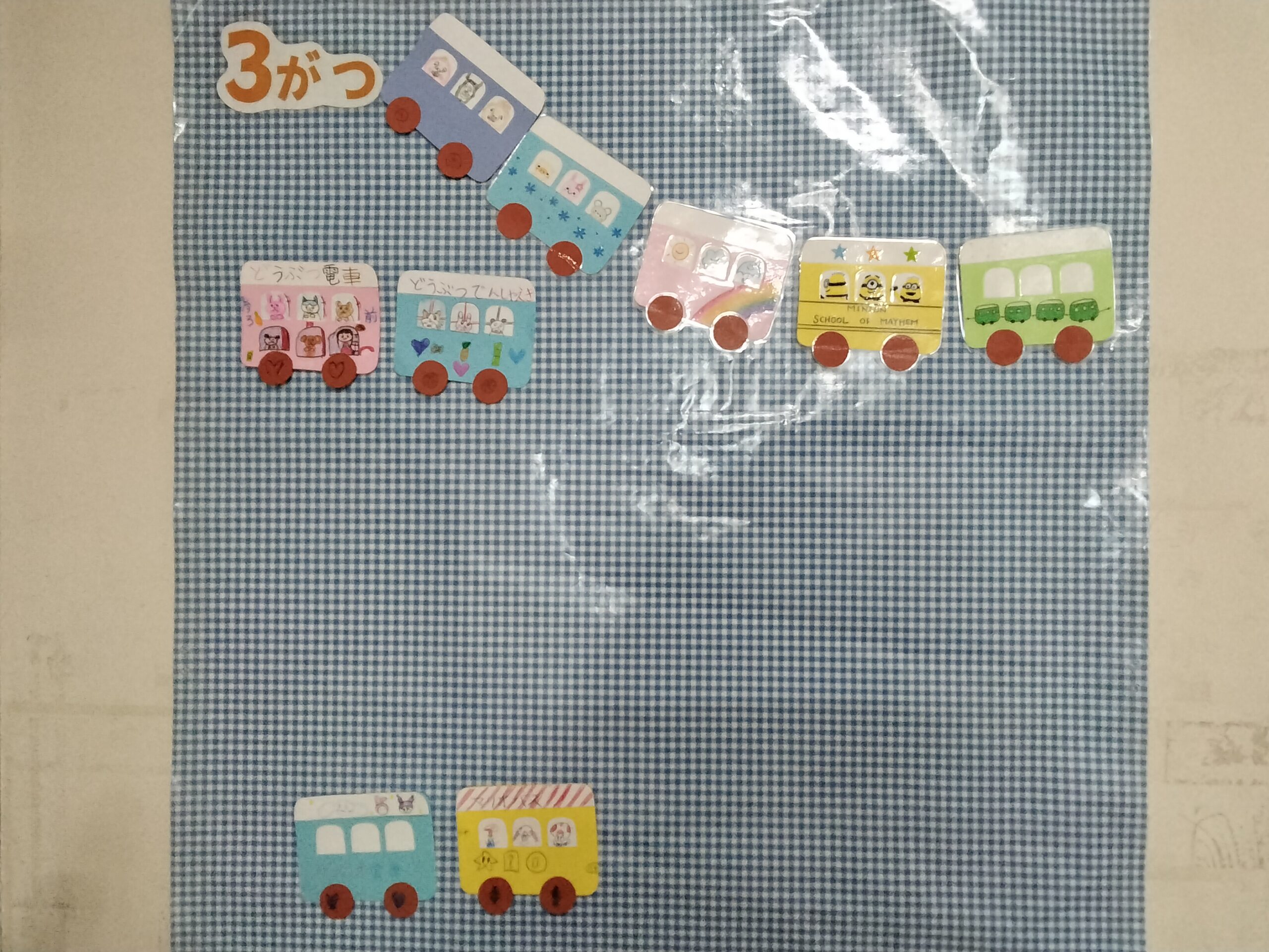 3月の壁面かざりは「電車」でした。